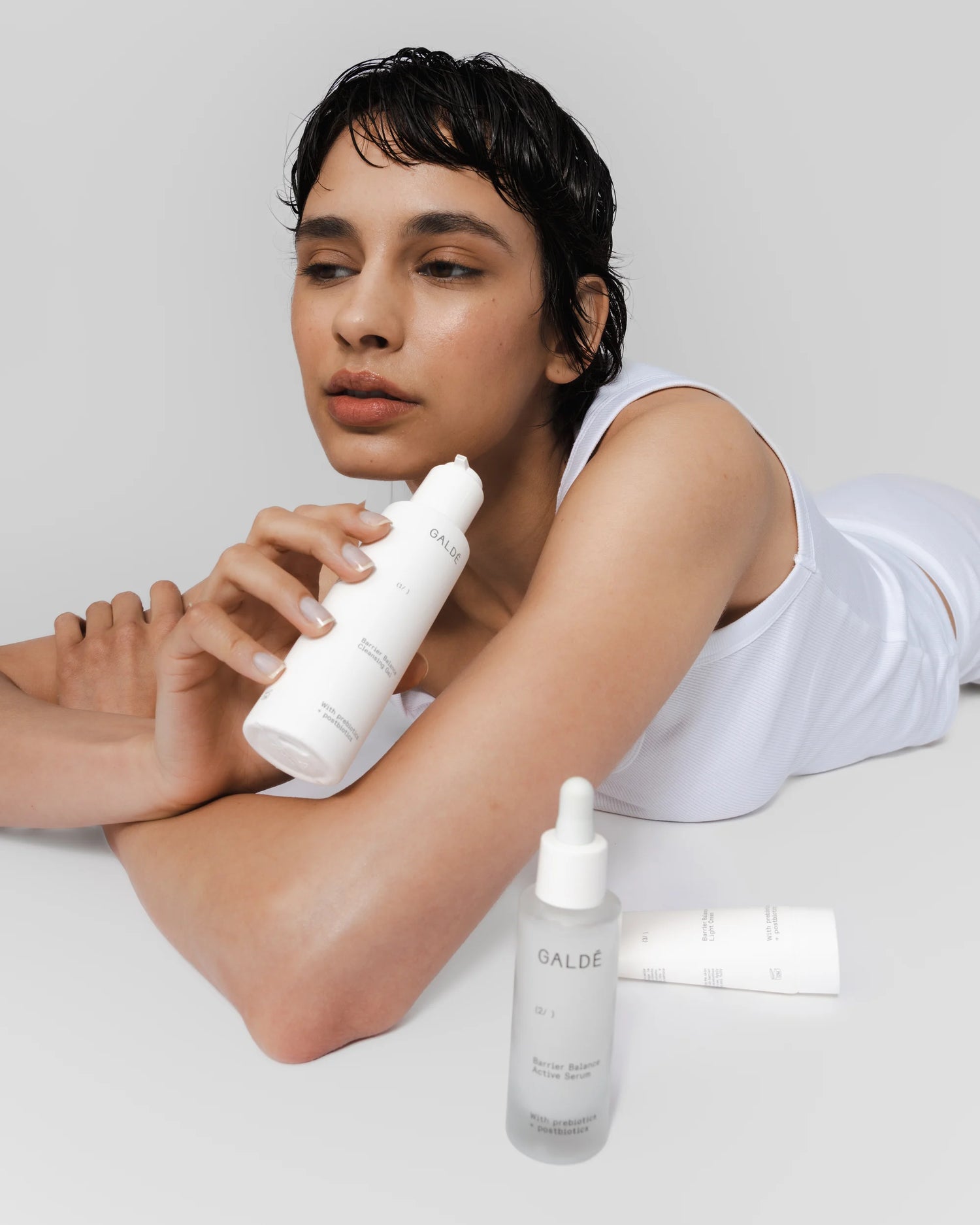 Galdé is a minimalist, probiotic-powered skincare brand created to calm reactive skin and strengthen the barrier over time. Built around microbiome balance, its simple 3-step routine supports skin resilience, reduces sensitivity, and restores stability through consistent, essential care.